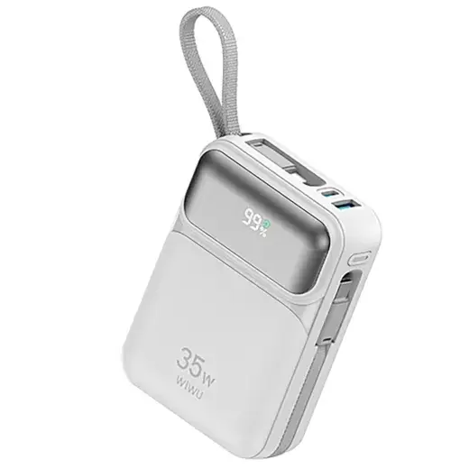 Підтримує протокол PD Павербанк із підтримкою PD 35 Вт забезпечує дуже швидке заряджання, завдяки чому час поповнення енергії суттєво скорочується. Технологія Power Delivery дозволяє ефективно та стабільно заряджати смартфони й інші гаджети без втрати потужності. Це зручне рішення для випадків, коли потрібно швидко підживити пристрій перед виходом або в умовах активного дня. Одночасне заряджання кількох пристроїв Павербанк підтримує одночасне підключення до чотирьох пристроїв, що дозволяє заряджати смартфони, навушники, планшети та інші гаджети без черги. Окрім стандартних портів, він також оснащений вбудованим кабелем USB-C та вбудованим кабелем Lightning, що робить використання ще зручнішим і позбавляє необхідності носити додаткові дроти. Розумний розподіл енергії забезпечує стабільну роботу кожного підключеного пристрою, що особливо корисно для користувачів, які активно використовують кілька гаджетів одночасно. Зарядка в обидва боки Пристрій підтримує швидку зарядку потужністю до 35 Вт у двох напрямках — він може як заряджати інші гаджети, так і швидко відновлювати власний заряд. Завдяки порту Type-C продукт повністю заряджається приблизно за 3 години, що суттєво економить час. Це зручне рішення для щоденного використання, яке дозволяє завжди мати під рукою готове джерело енергії. Висока ємність для тривалої автономності Завдяки ємності 20000 мА·год пристрій здатний забезпечити кілька повних зарядок смартфона, що робить його надійним рішенням для подорожей, відряджень або тривалого перебування поза домом. Великий запас енергії дозволяє не хвилюватися про розряджені пристрої протягом дня та зберігати повну мобільність у будь-яких умовах. Характеристики: