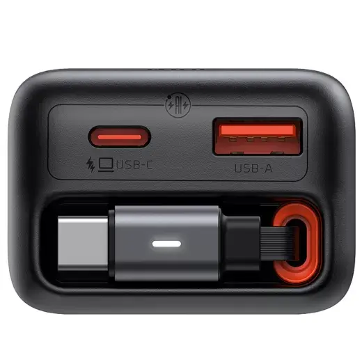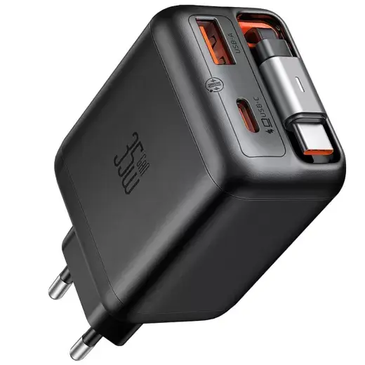 Вбудований кабель та універсальні порти Mcdodo CH-1280 GaN Charger оснащений висувним USB-C кабелем довжиною 65 см, який ховається всередину корпусу і не заплутується в сумці чи рюкзаку. Окрім вбудованого кабеля, зарядний пристрій має два додаткові роз’єми — USB-C та USB-A, тому може одночасно живити кілька гаджетів. Такий формат дозволяє заряджати смартфон, навушники або інший аксесуар без необхідності носити з собою додаткові кабелі. GaN-технологія та стабільна потужність Модель побудована на GaN-чіпі, який забезпечує більш ефективну роботу та нижчу температуру під час тривалого заряджання. Максимальна вихідна потужність становить 35 Вт — цього достатньо для швидкого заряджання сучасних смартфонів і планшетів, включно з пристроями, що підтримують Power Delivery та Quick Charge. Адаптер сам визначає оптимальний режим і подає стільки енергії, скільки потрібно конкретному гаджету. Матеріали та безпека Корпус виготовлений із вогнестійкого пластику Fireproof PC з рейтингом V0. Вбудована система захисту контролює струм, напругу та температуру, запобігаючи перегріванню й стрибкам живлення. Конструкція компактна та легка, тому зарядку зручно брати із собою у поїздки або використовувати як основну вдома чи в офісі. Характеристики: