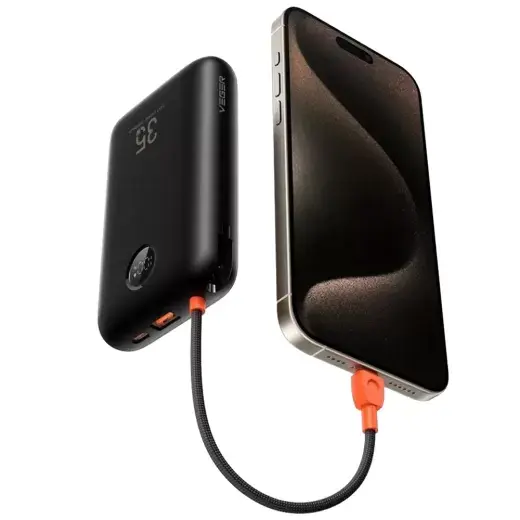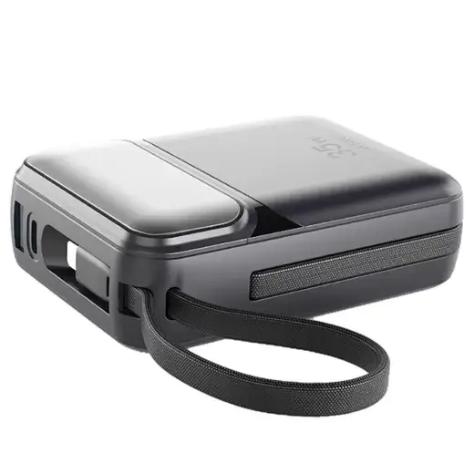 Потужний запас енергії 30000 мАг Повербанк Veger K3 W3018 Built-in Cables PD 35W 30000mAh — це портативний акумулятор із номінальною ємністю 30 000 мАг, розрахований на багаторазове заряджання смартфонів, планшетів, смарт-годинників та інших мобільних пристроїв. Такий об’єм батареї дозволяє тривалий час залишатися на зв’язку без доступу до розетки. Модель стане практичним рішенням для щоденного використання, поїздок або ситуацій, коли необхідне резервне живлення. Швидка зарядка до 35 Вт Максимальна вихідна потужність становить 35 Вт. Підтримуються технології швидкого заряджання Power Delivery та QC 3.0, що забезпечує сумісність із сучасними телефонами та планшетами. Модель має роз’єми USB-C та USB-A і додатково комплектується двома інтегрованими кабелями — з конекторами USB-C та Lightning. Це дозволяє підключати пристрої без додаткових дротів та одночасно заряджати до двох гаджетів. Продумана конструкція Корпус виготовлений із пластику (ABS та PC), що забезпечує міцність і стійкість до щоденного використання. Літій-полімерна батарея відзначається стабільною роботою та ефективним збереженням енергії. Для контролю рівня заряду передбачений дисплей, який відображає актуальний залишок енергії. Реалізований захист від перегріву підвищує безпеку під час заряджання. Зручність у деталях Повербанк заряджається через вхідний порт USB-C. Вбудовані кабелі спрощують використання в дорозі та зменшують потребу носити додаткові аксесуари. Компактний формат і чорний колір корпусу роблять модель універсальною для роботи, подорожей і повсякденного носіння. Характеристики: